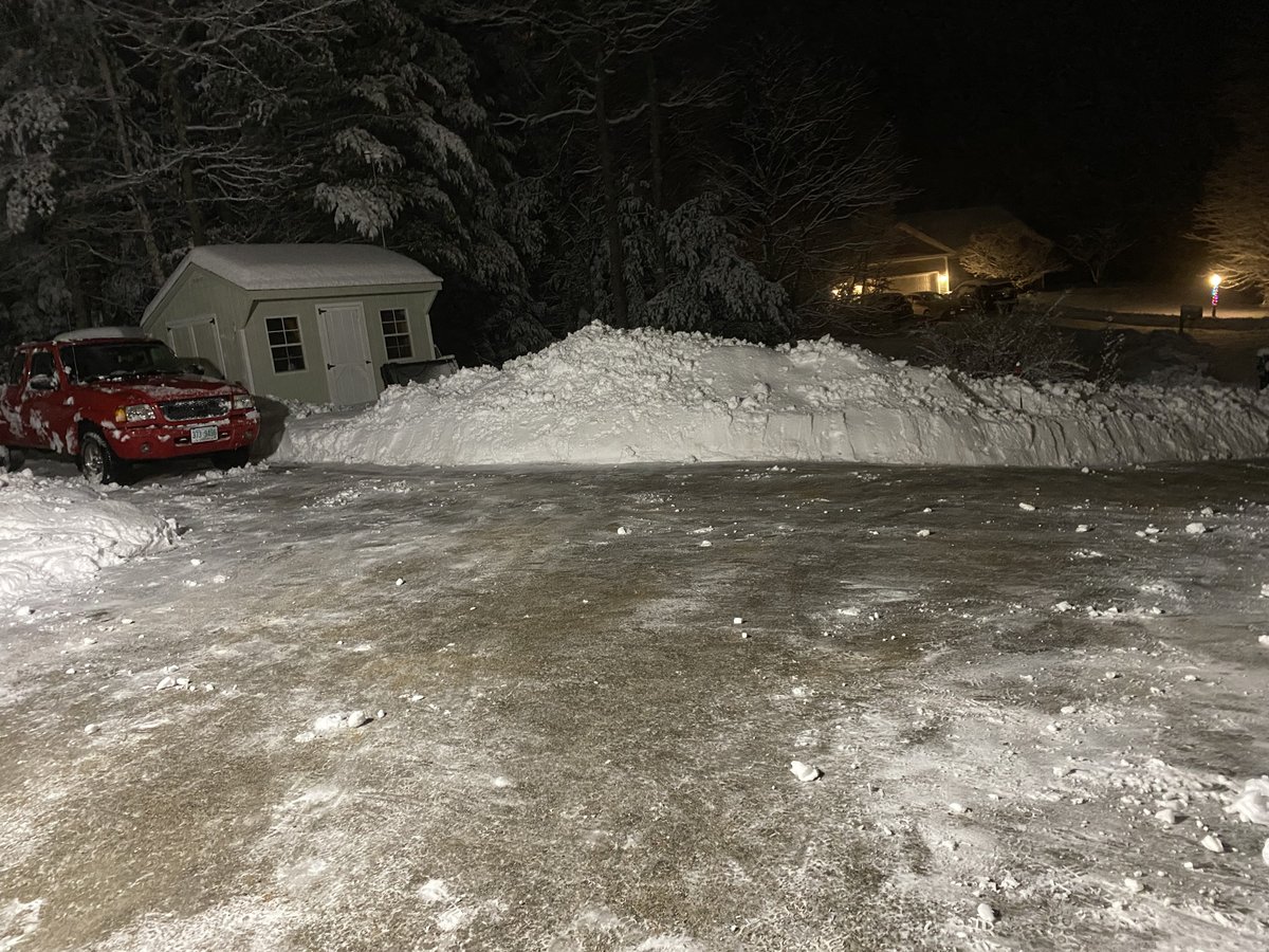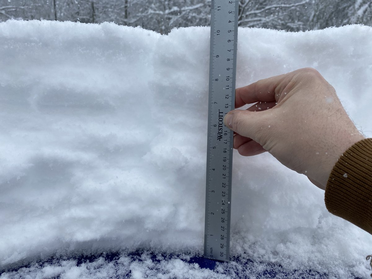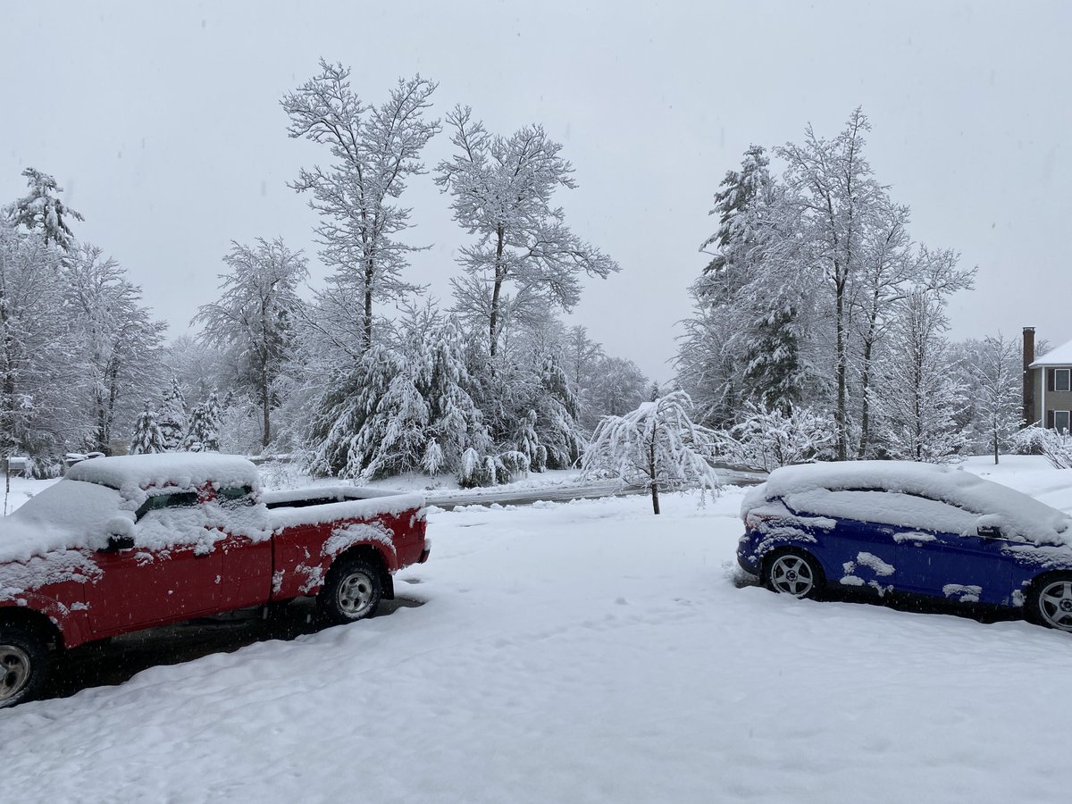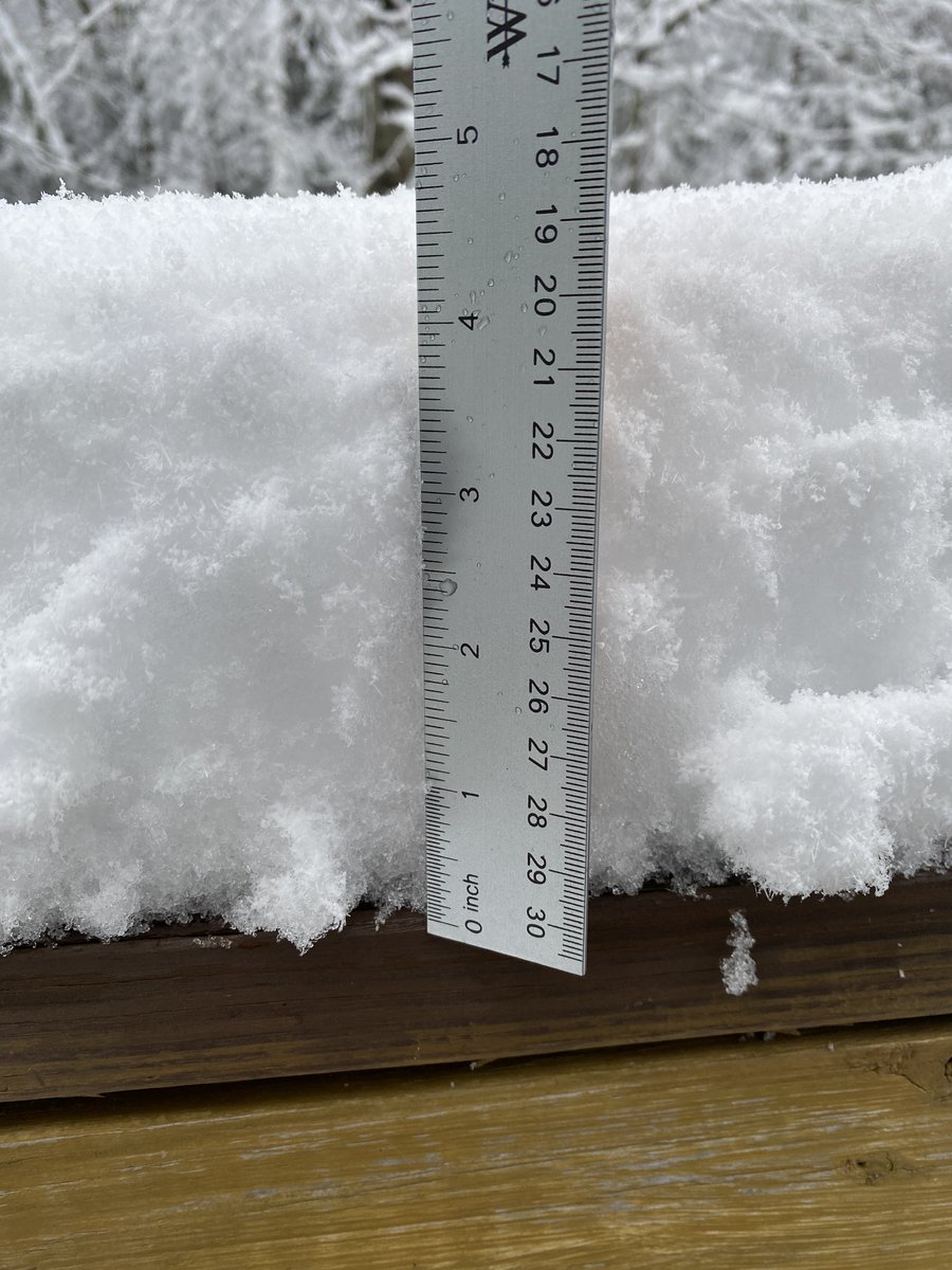 3-4” of the heaviest snow possible. it’s starting to pile up.