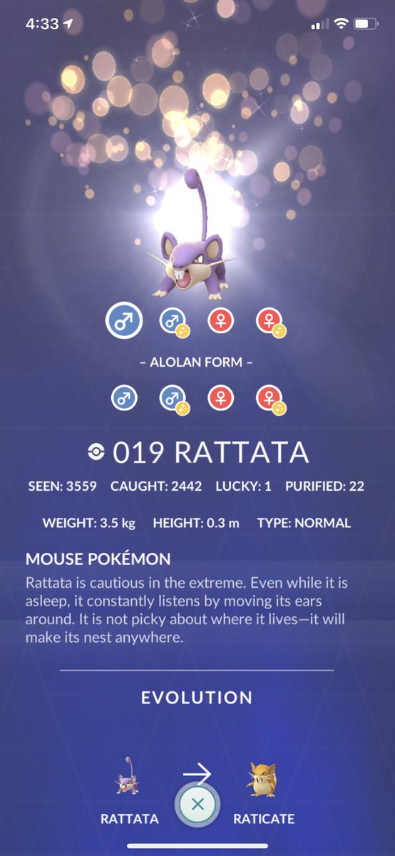 four and a half years, 65 million XP, 91,000 pokémon caught. finally got 300 small rattatas #PokemonGo