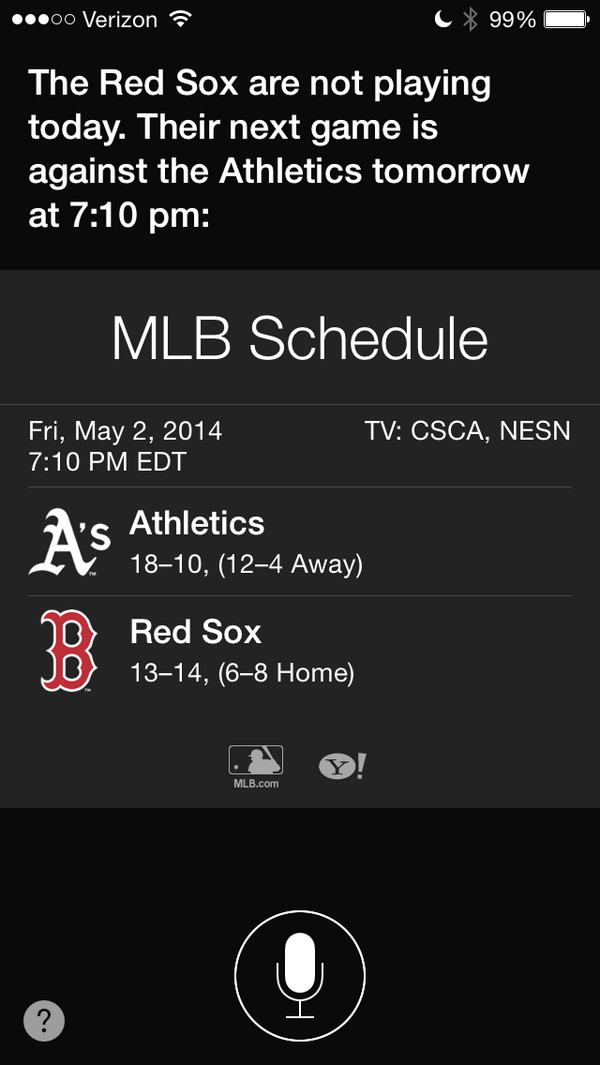 hrm Siri told me the Red Sox aren't playing today (there's a doubleheader with Tampa Bay)