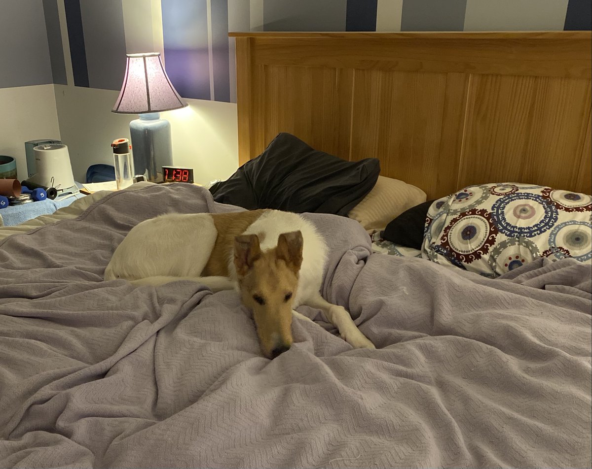 he’s a good good boy. 12/10 gets to lounge on the bed until we’re done reading.