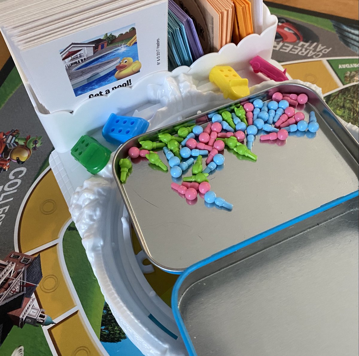 we’re playing Life except all the cars and people and kids and pets are stuck at home