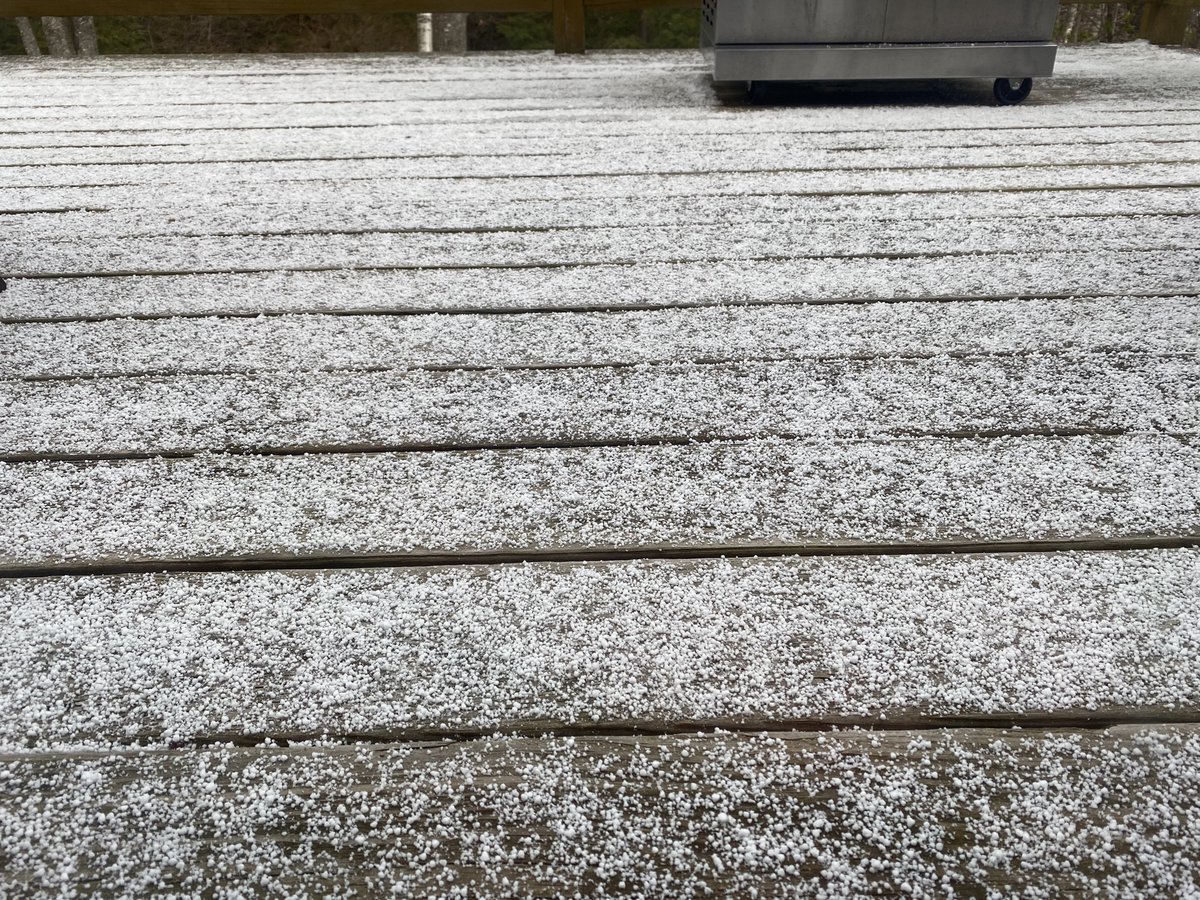 this morning’s snow has melted but now we’re getting a graupel sun-shower!