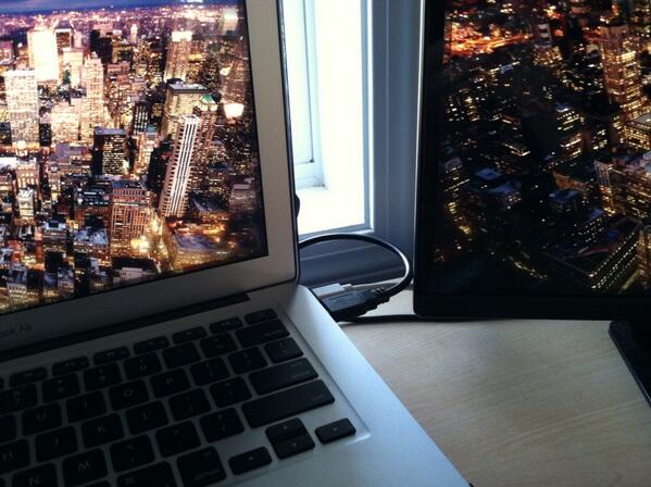 free idea for Apple and Microsoft: i hook up external monitor to laptop, take a photo of them both. your software uses photo to orient them.