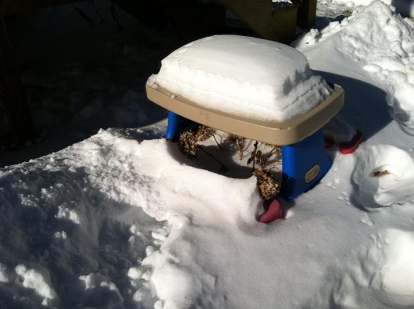 do something with the kids table: check. make a snowframe to protect the hydrangea: check.