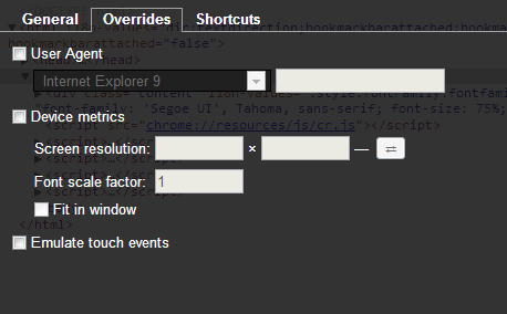 ohai device metric emulation in Chrome (Developer Tools -> Settings -> Overrides)