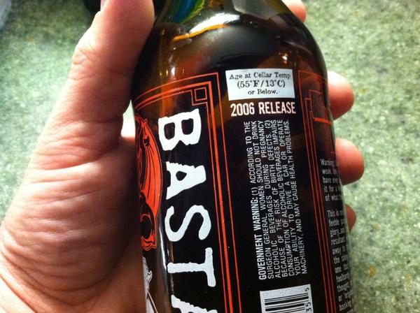 tonight we're enjoying our 22oz of @StoneBrewingCo's Double Bastard. from 2006.