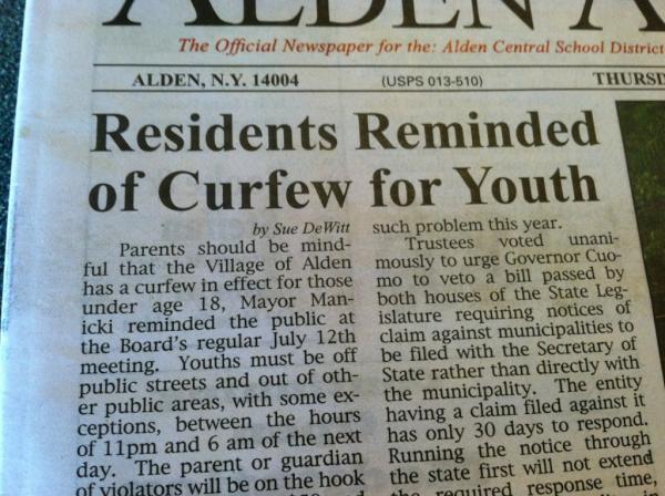 "Residents Reminded of Curfew for Youth" translation: watch your darn kids