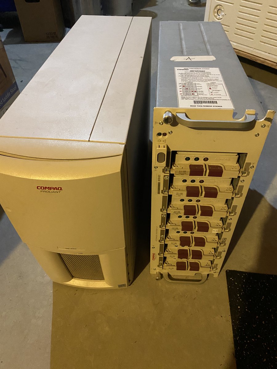 this is a Compaq ML350 G1 w/SCSI backplane. if you bought coffee at a popular coffee restaurant in the early 2000s, your transaction may have gone through this computer (disks were wiped when i purchased it)