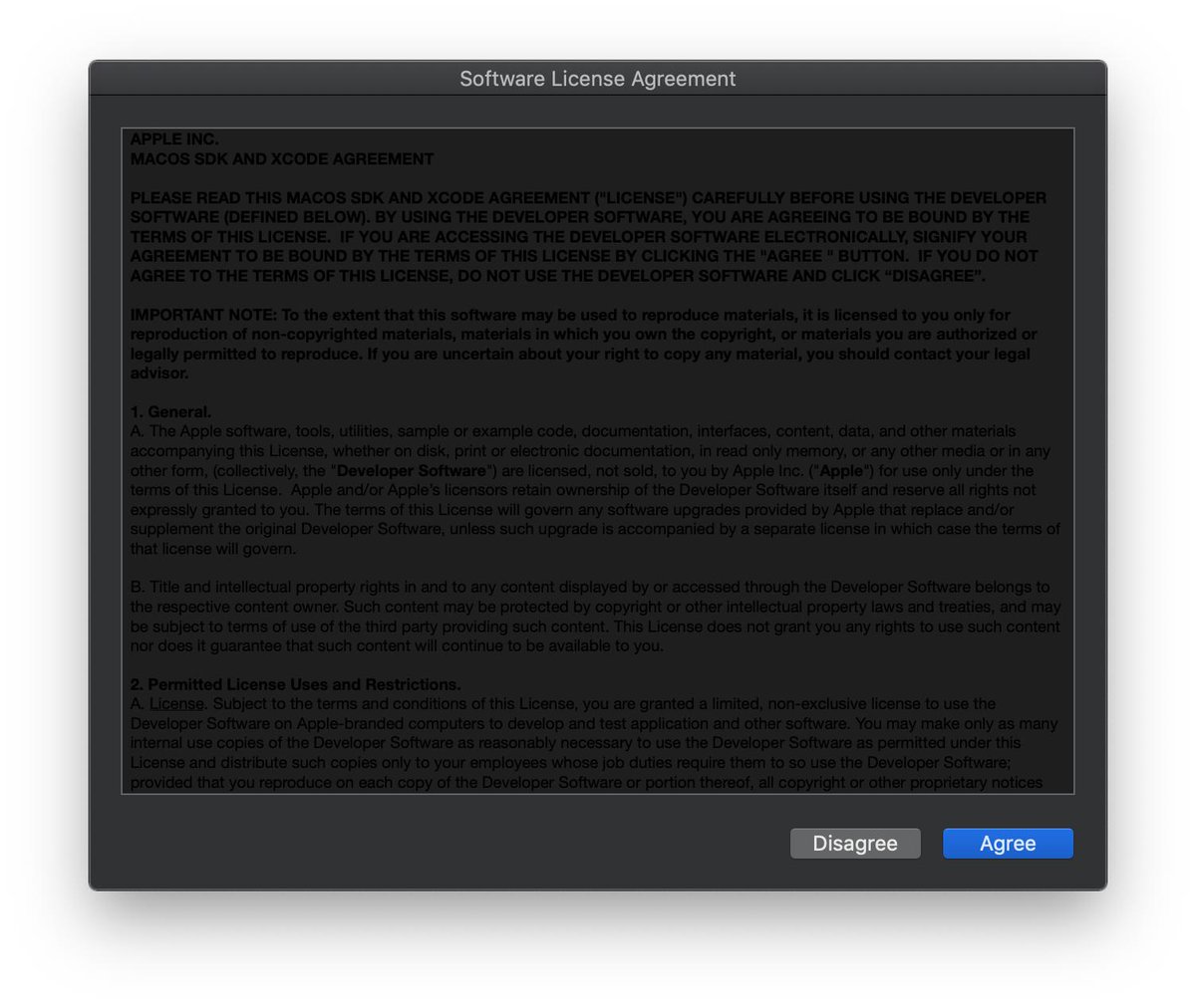 nobody tested the Software Agreement in Dark Mode.