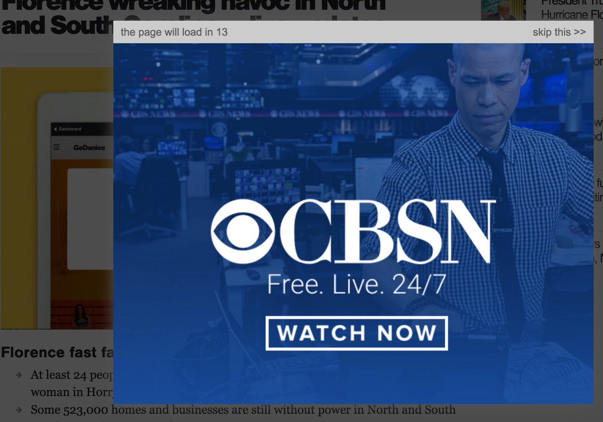 the modal video ad autoplayed, covering the preroll video ad, and when over, the in-page content video never loaded.