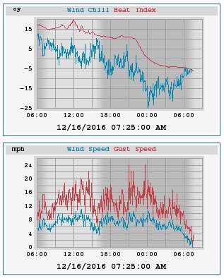 temperature vs. wind gusts last night, recorded wind chill of -25 in Rindge
