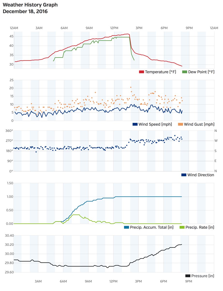 the correlation between temperature (plummeting), wind direction, and barometric pressure. #NHwx