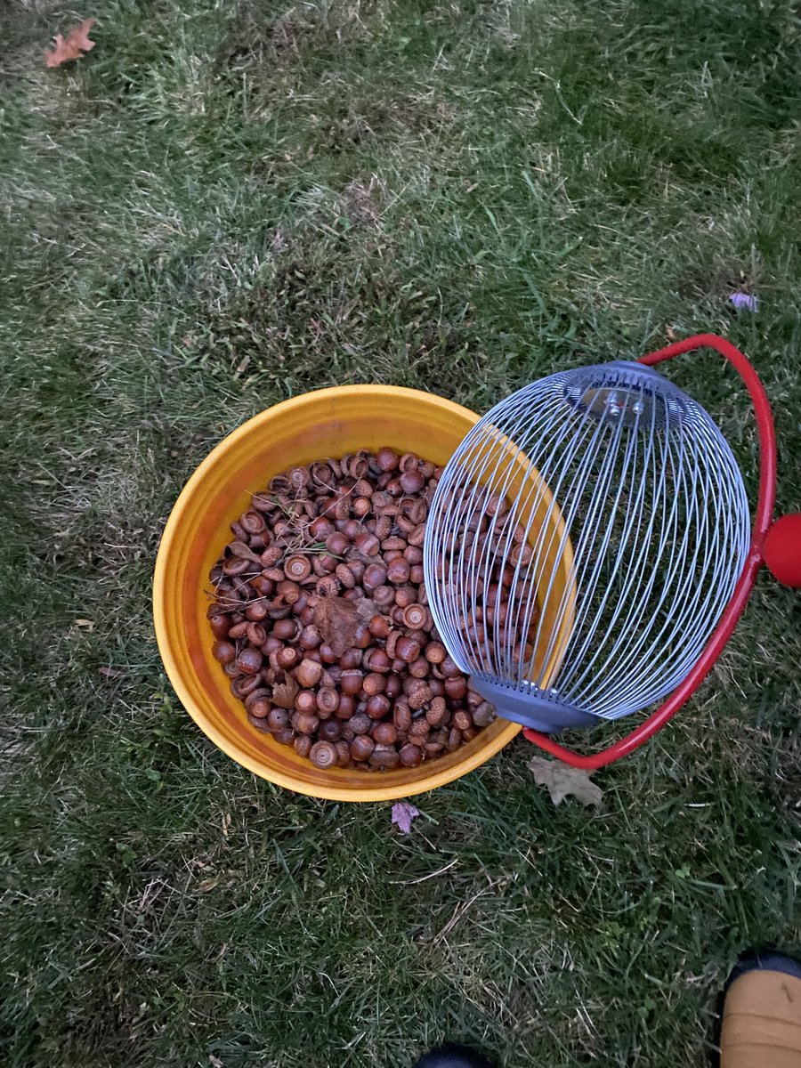 this is the 3rd 5-gallon pail of acorns we’ve pulled out of the yard