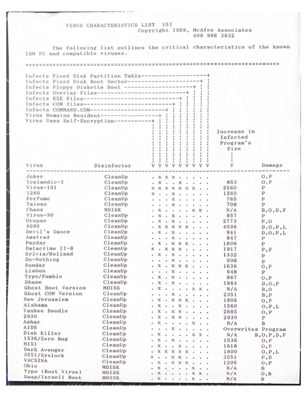 one of the gems i found in my college papers: Virus Characteristics List v57, 1989.