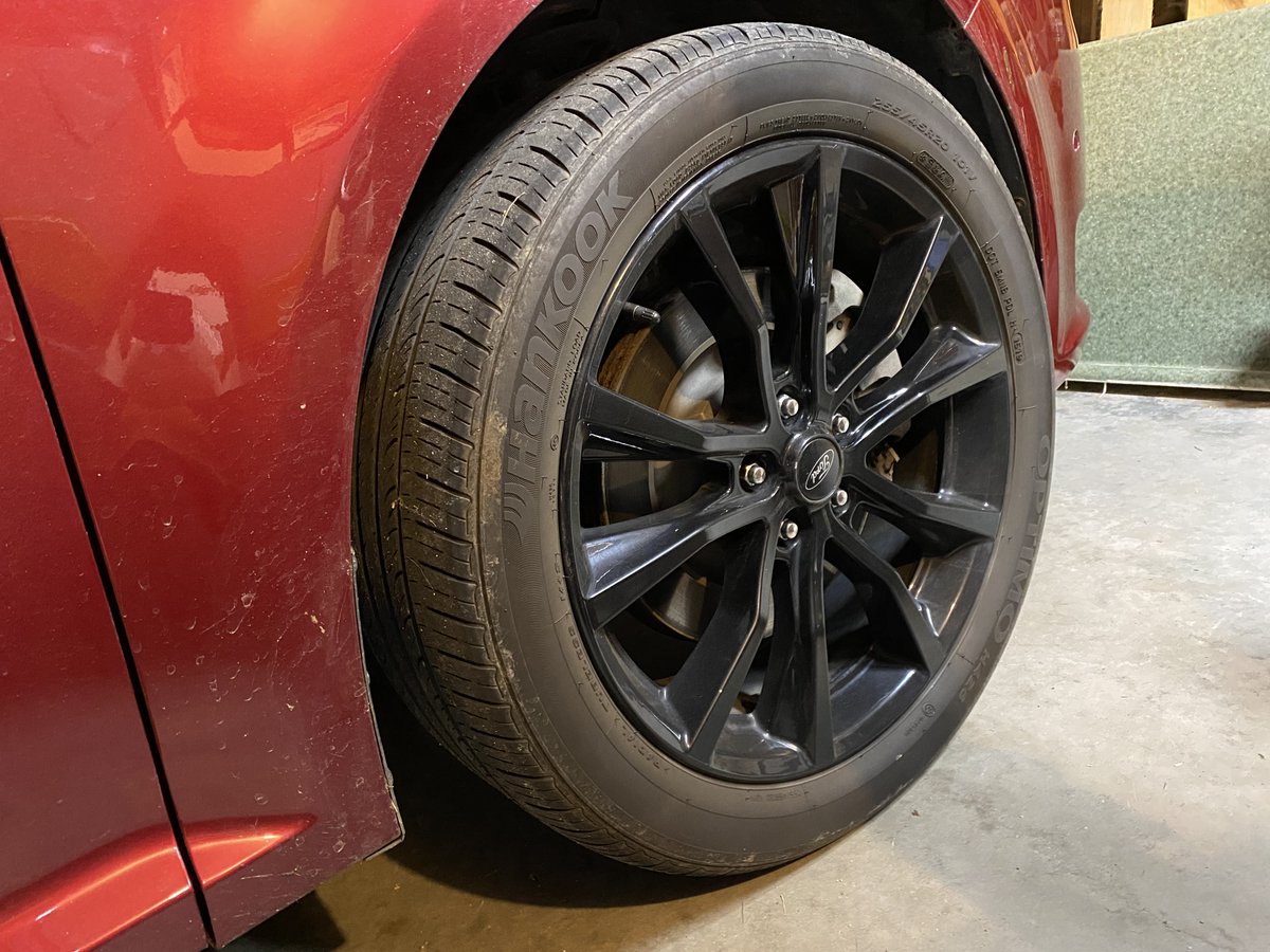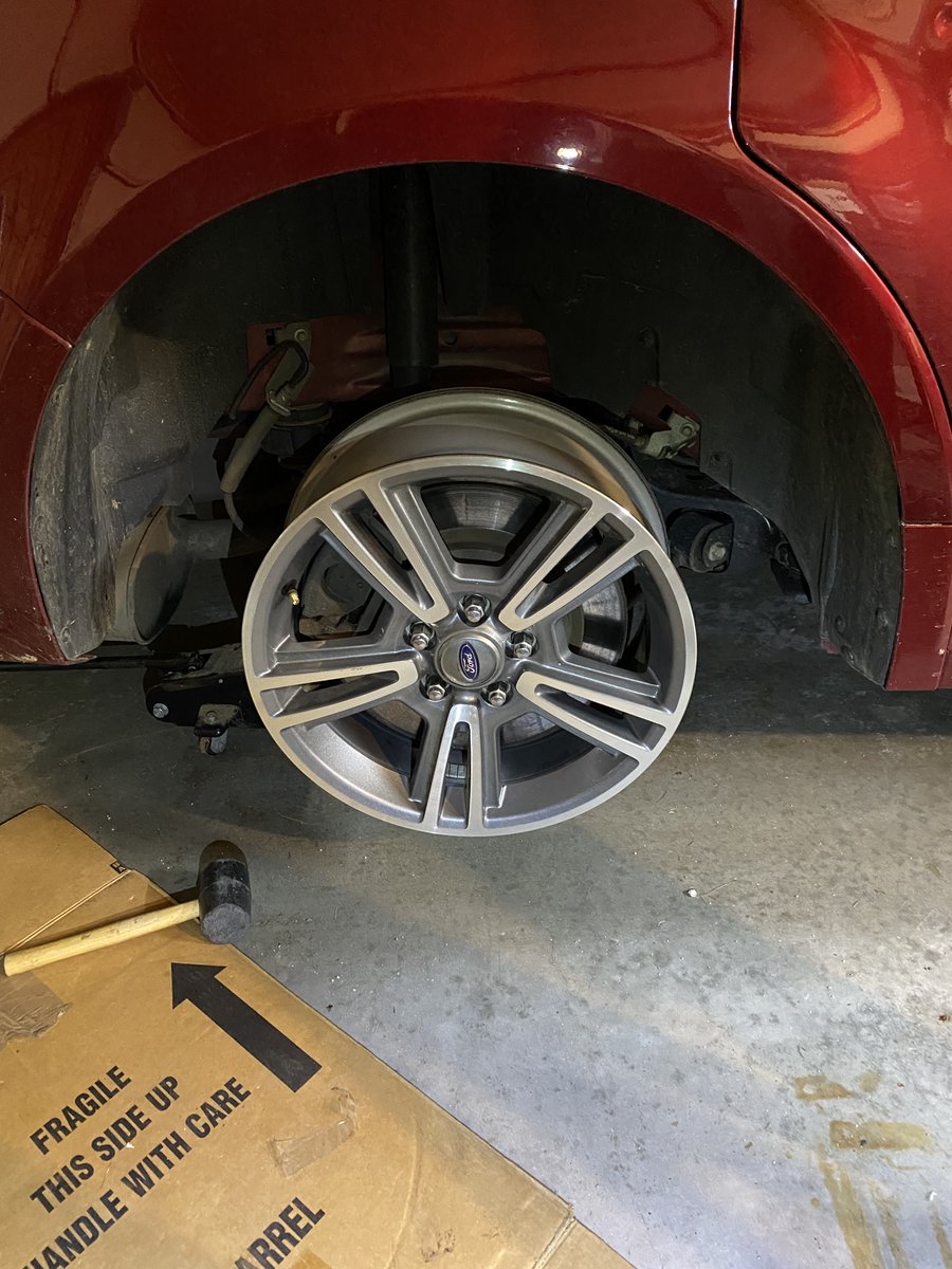 it might be sacrilegious to use these lovely Mustang wheels i had in my shed for snow tires, but the Flex needs more traction and sidewall for the winter than the stock 20’s provide