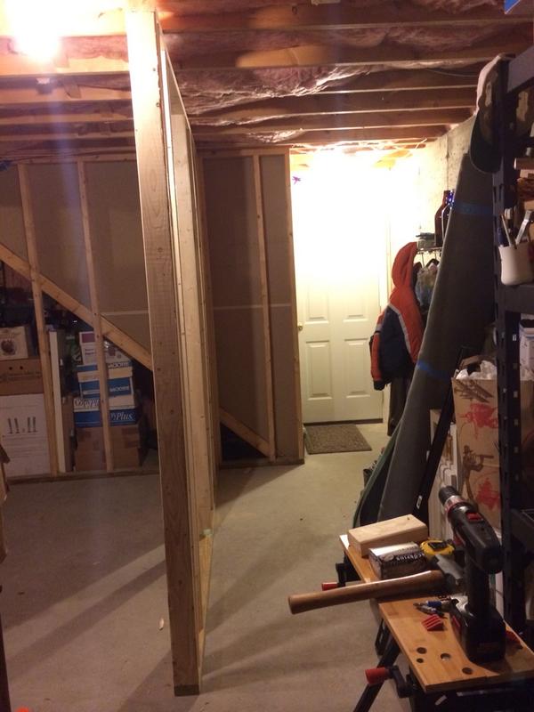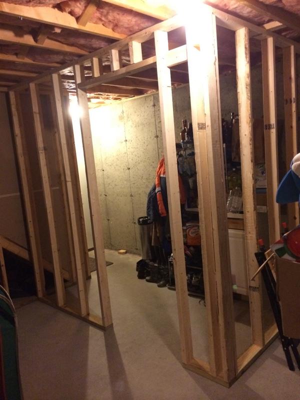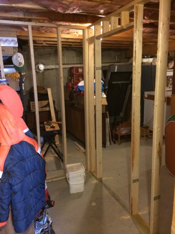 basement wall framing pro-tip: leave the bottom plate solid across door openings but back-cut the threshhold